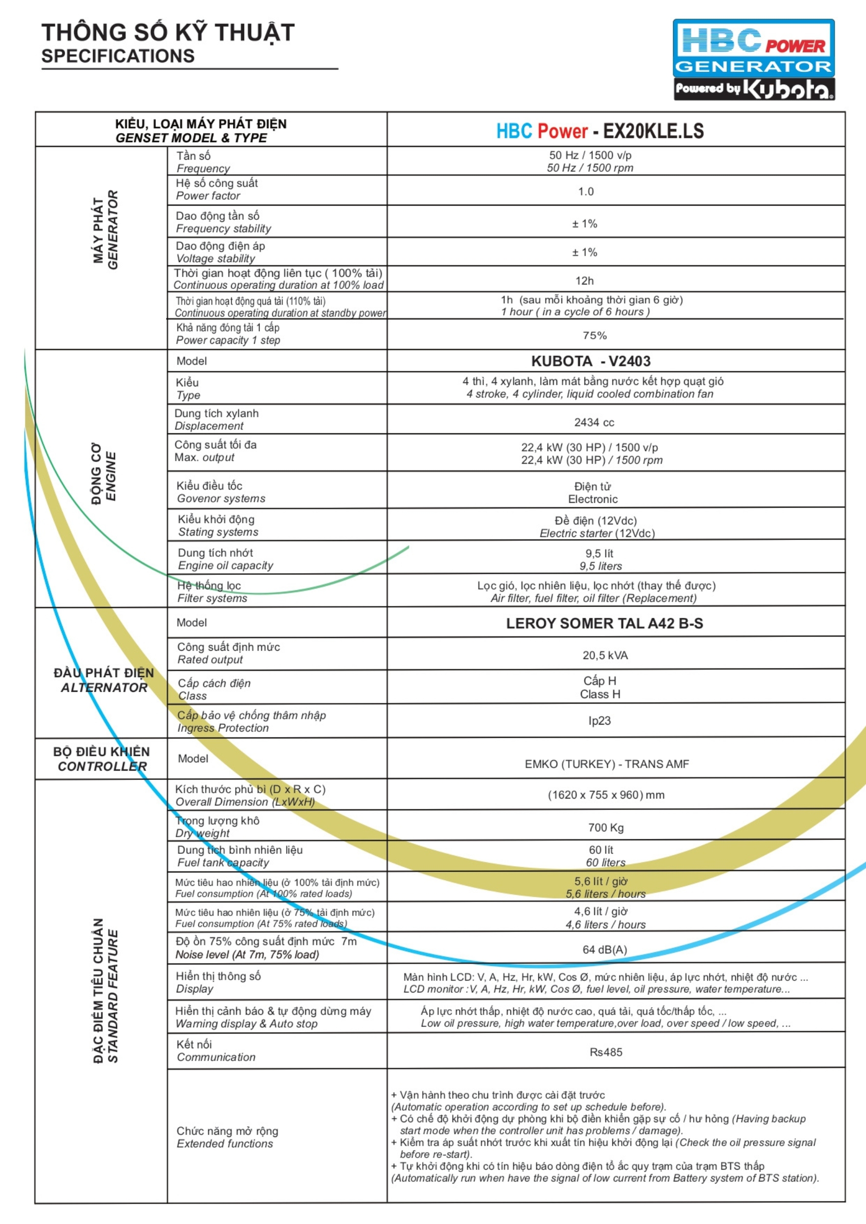- Đầu phát LEROY SOMER thương hiệu Pháp, độ ổn định điện áp, tần số cao.