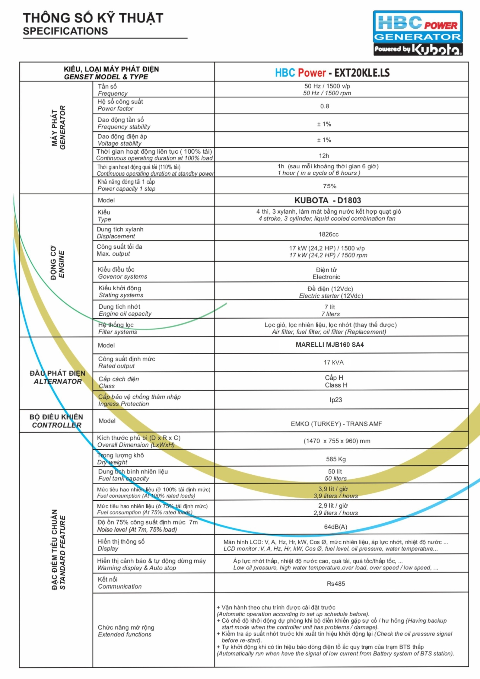 - Đầu phát MARELLI MJB160 SA4 thương hiệu Ý, độ ổn định điện áp, tần số cao.